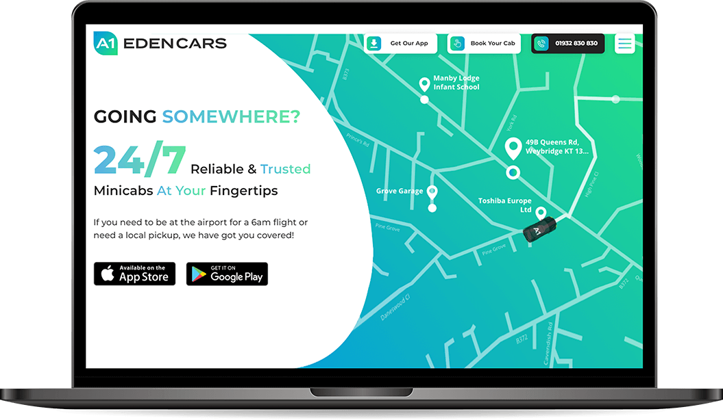 Algorithm Expert SEO was tasked with carrying out a brand overhual for the company to increase the number of online taxi bookings, the number mobile app downloads and help it to win lucrative contracts with businesses within the Weybridge location.